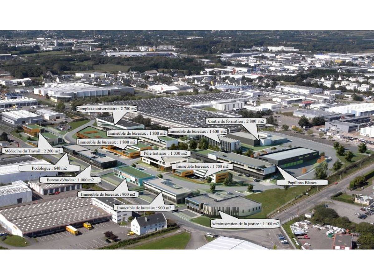 - Description du bâtiment : Aménagement à Brest sur un terrain de 60 000 m2 et construction de 27 000 m2 de bâtiments dédiés aux activités de bureaux.